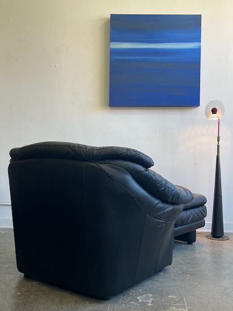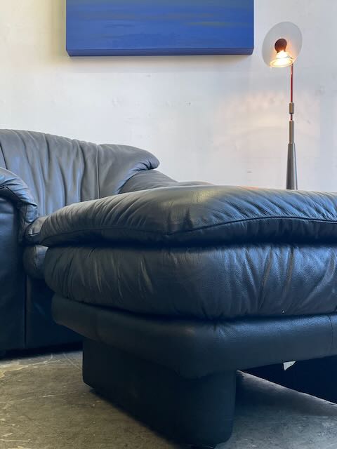 Now available – a postmodern vintage Italian lounge chair and ottoman. Oversized, plush, and designed for ultimate comfort, with sculptural curves and soft black leather. A bold and timeless piece for any space.
