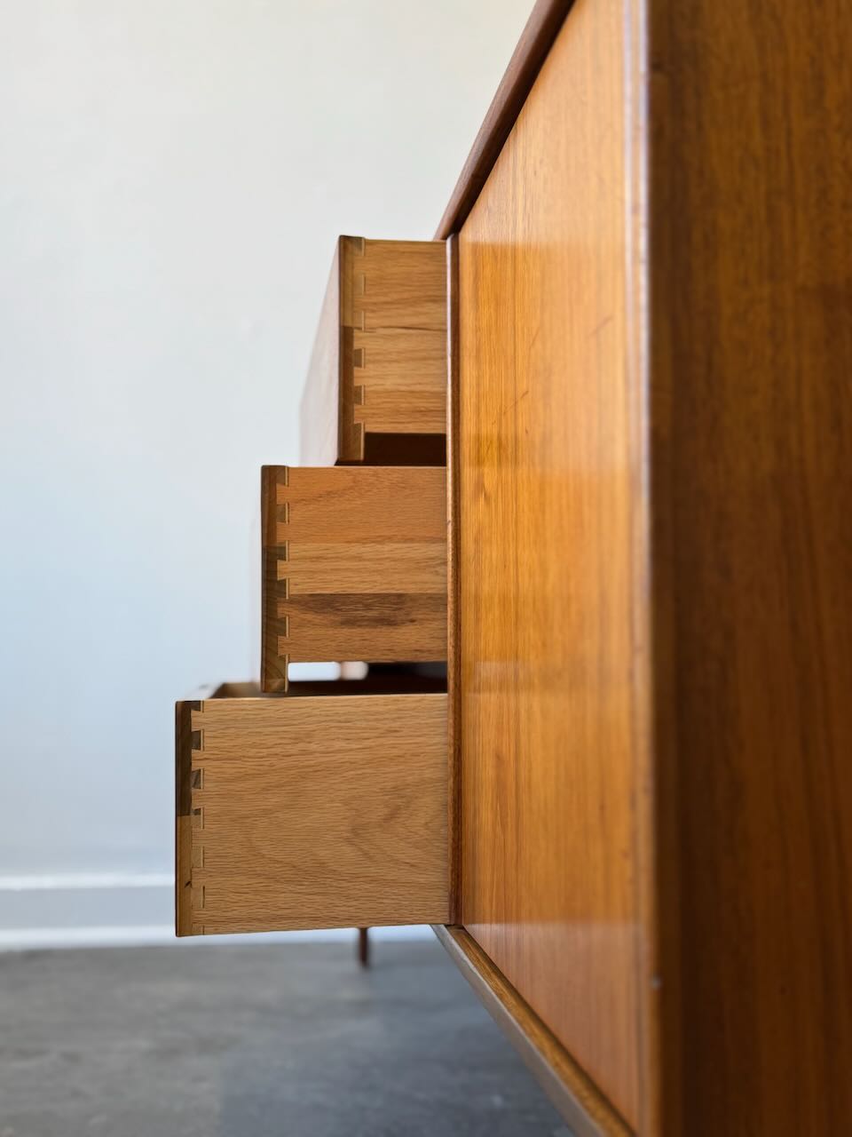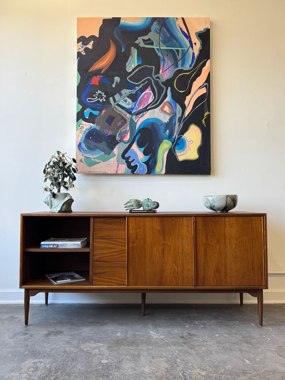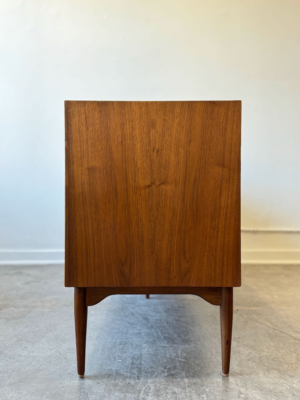 A stunning Mid-Century Modern credenza by John Keal for Brown-Saltman! This vintage gem is in great condition and boasts both style and substance. With generous storage and functionality thanks to its central drawers and side cabinets, it offers the perfect solution for media storage or a dining room sideboard. It embodies that classic mid-century design we all love, featuring warm walnut tones and tapered legs.