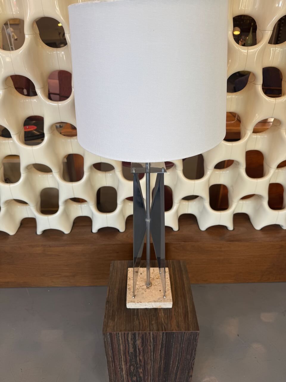 Maurizio Tempestini Travertine and Chrome Table Lamp