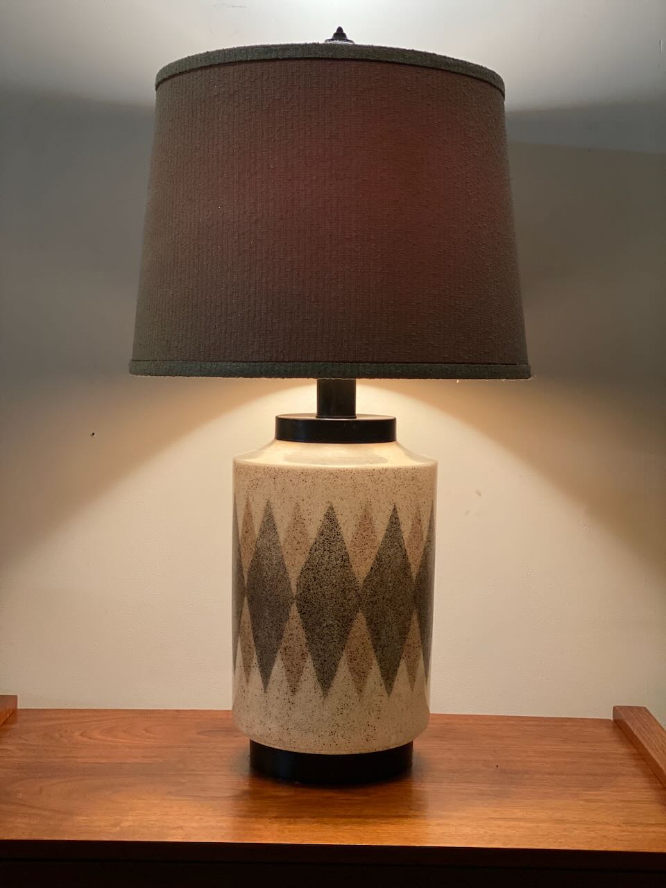 Mid Century Modern Ceramic Diamond Print Table Lamp