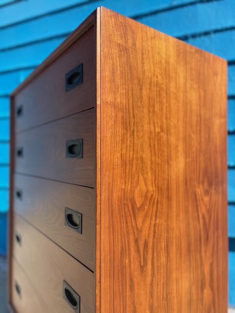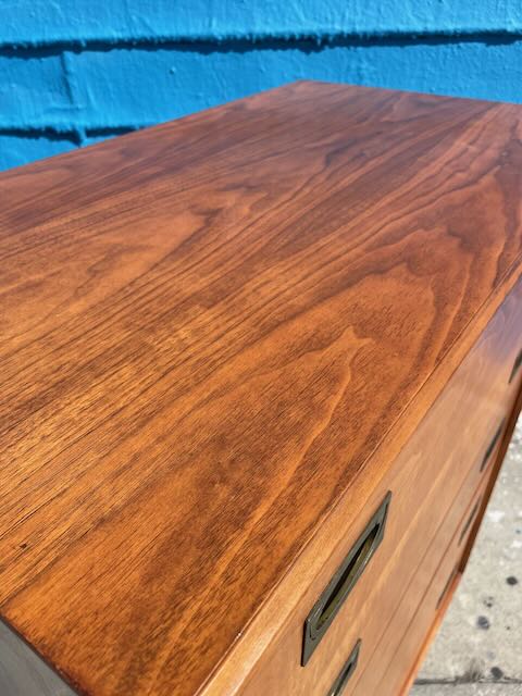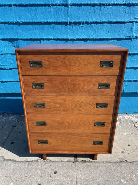 We have a really great authentic John Widdicomb tall dresser that has class, style, and practicality written all over it. Smooth drawers and beautiful brass pulls, this 1970’s gem is a great size and would slip into any space with grace.