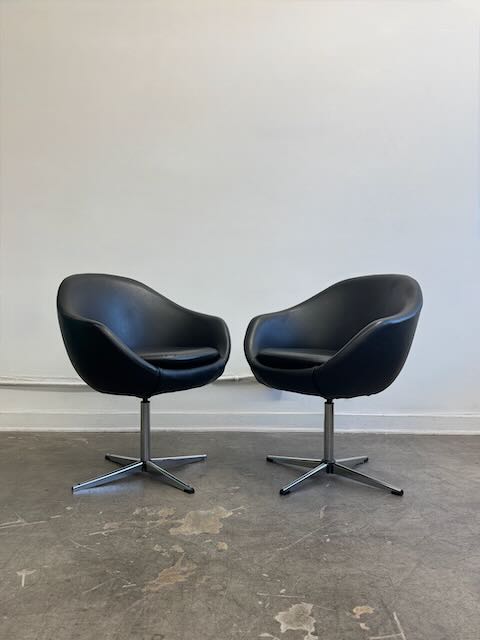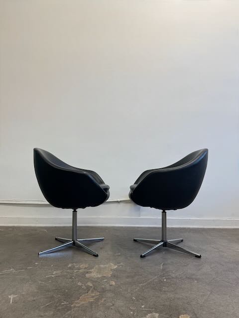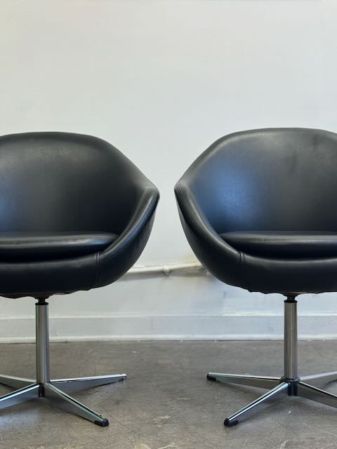Step back in time with this stunning pair of Overman Pod Chairs from Sweden circa the late 1960s! 🖤✨ These are more than just chairs; they’re an iconic piece of design history. Crafted in sleek black vinyl and chrome, these beauties have serious staying power and are ready for another 50 years of stylish comfort.